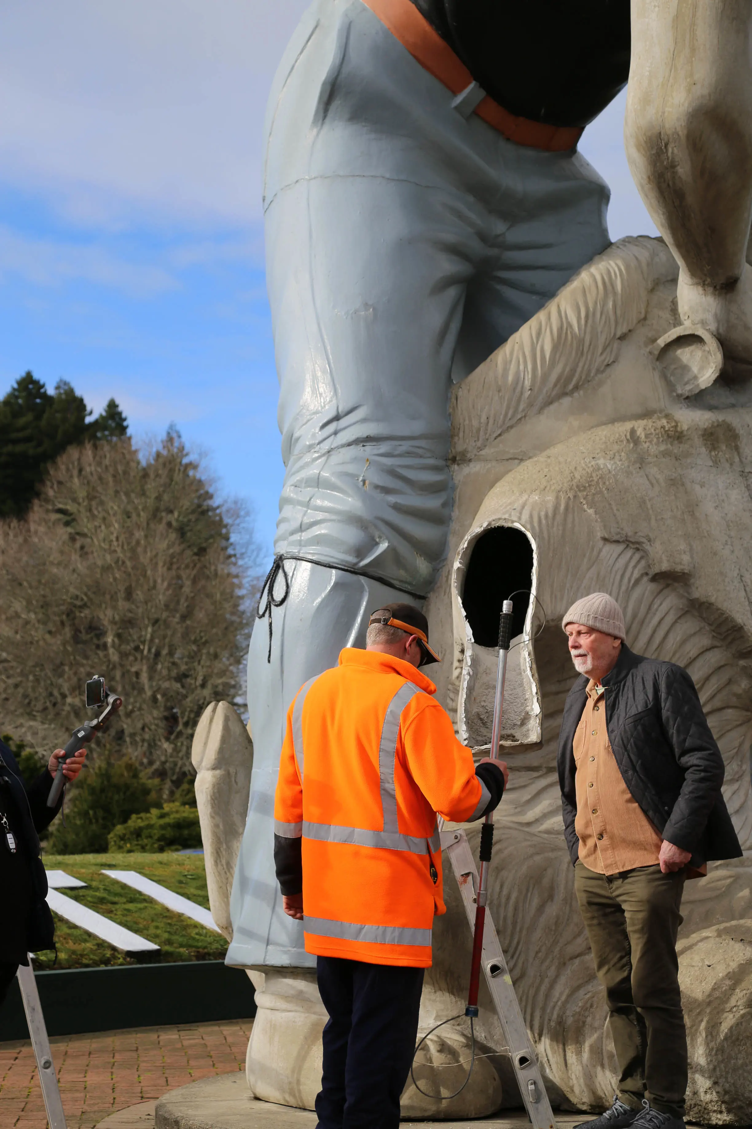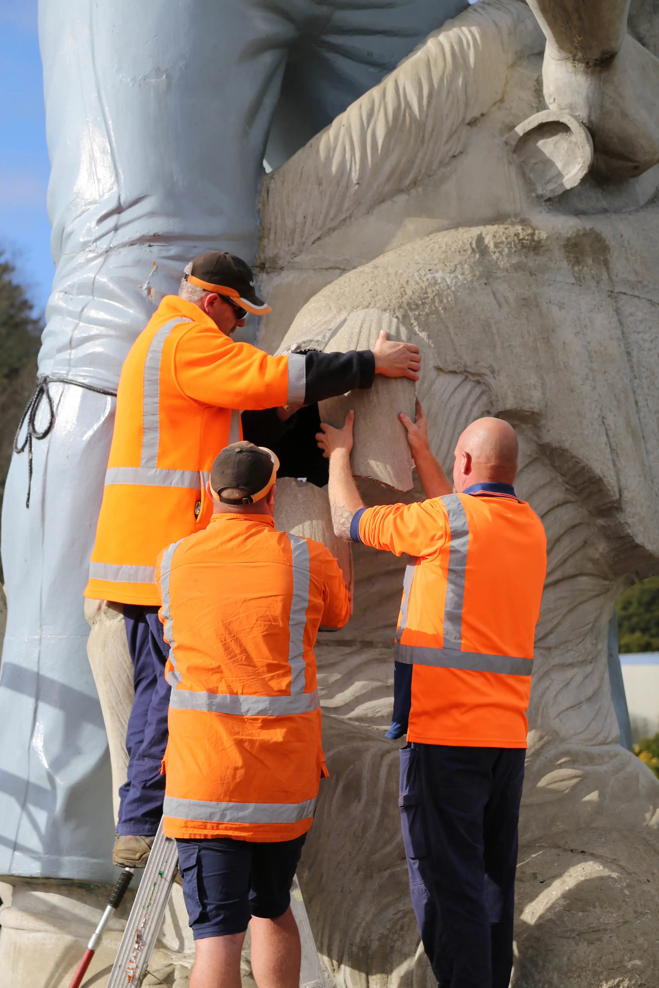 The ambitious project was built in stages from polystyrene and plaster, and then encased in glass-reinforced cement. It was during construction that sculptor Denis Hall thought it would be a great idea to enclose time capsules within the statue, to be opened in the future.