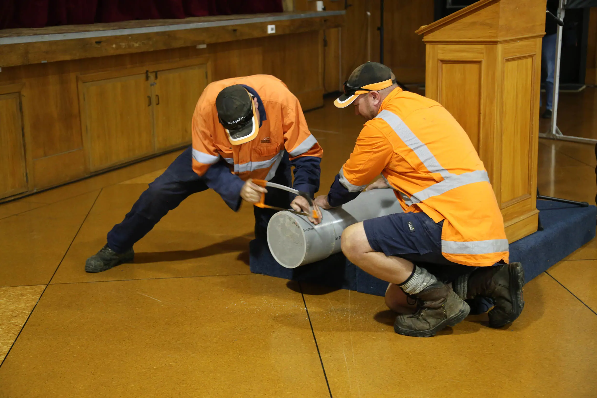 In May 1994, the foot of the shearer was opened, and items were carefully placed inside capsules crafted from eight-inch watermain pipes, sealed securely at both ends. Once the capsules were enclosed, the foot was sealed once again, creating a secure space to preserve the contents within until reopened.